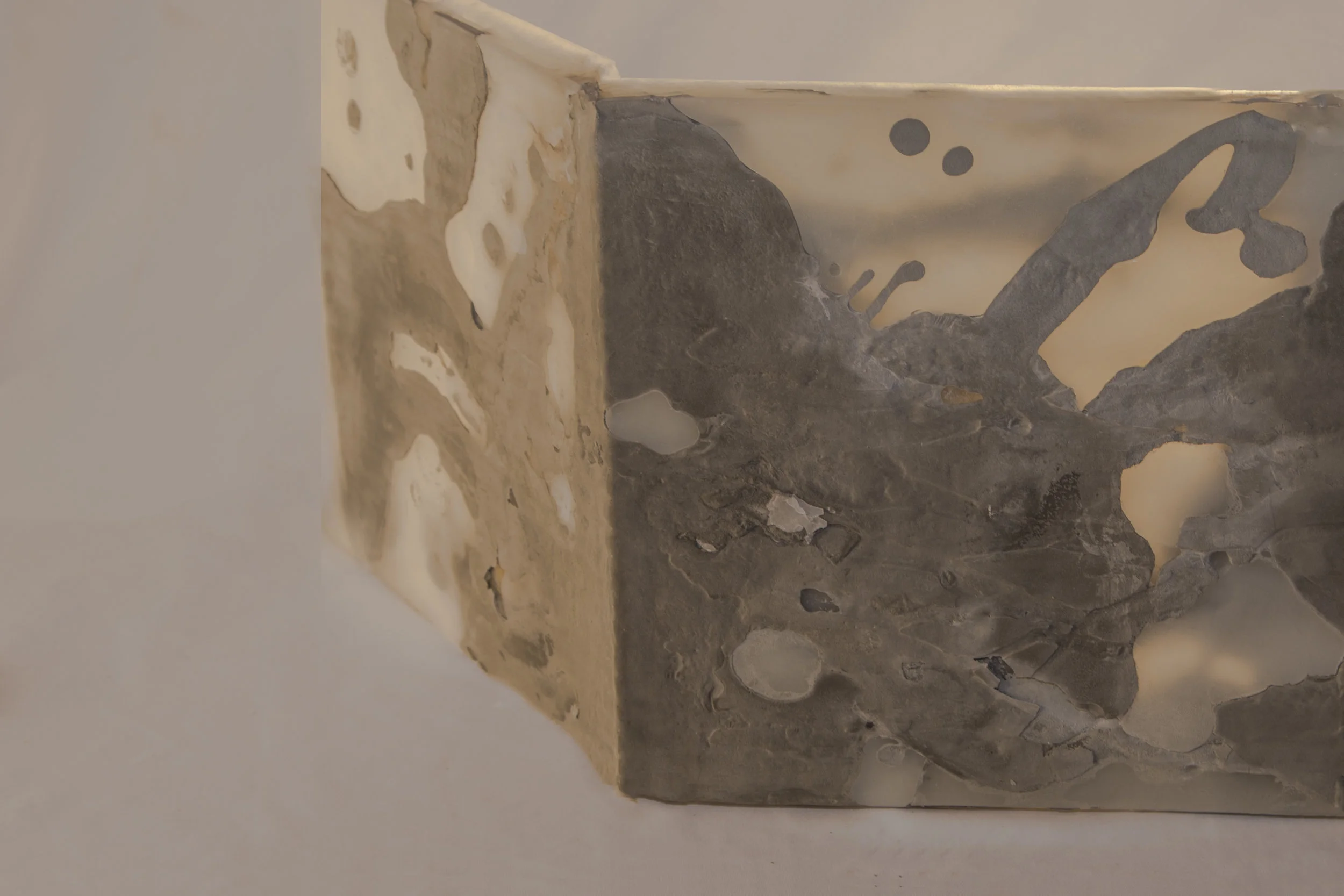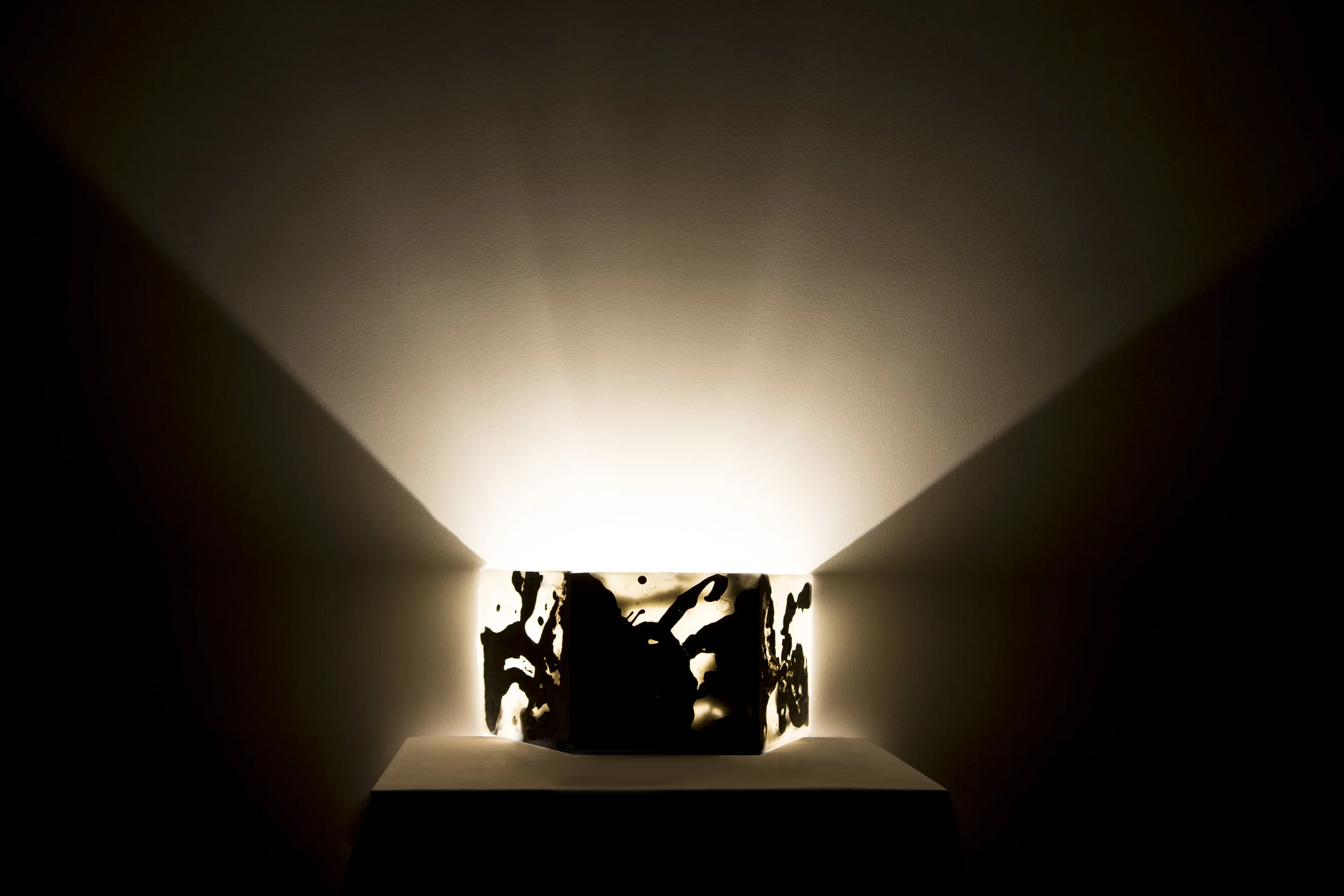 Each material creates a unique effect on the light that goes through it. The first lamp uses the interior layer of a cardboard reconfigured to create a panel. The relationship between the object and the light is important because neither the light nor the material could create such an effect on its own.